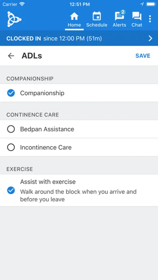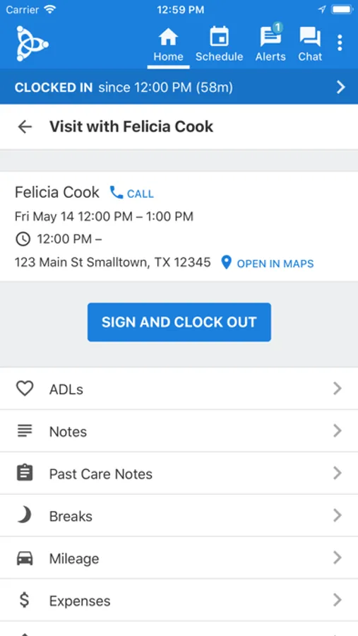 - Receive alerts about late clock in/out, open visits, etc.