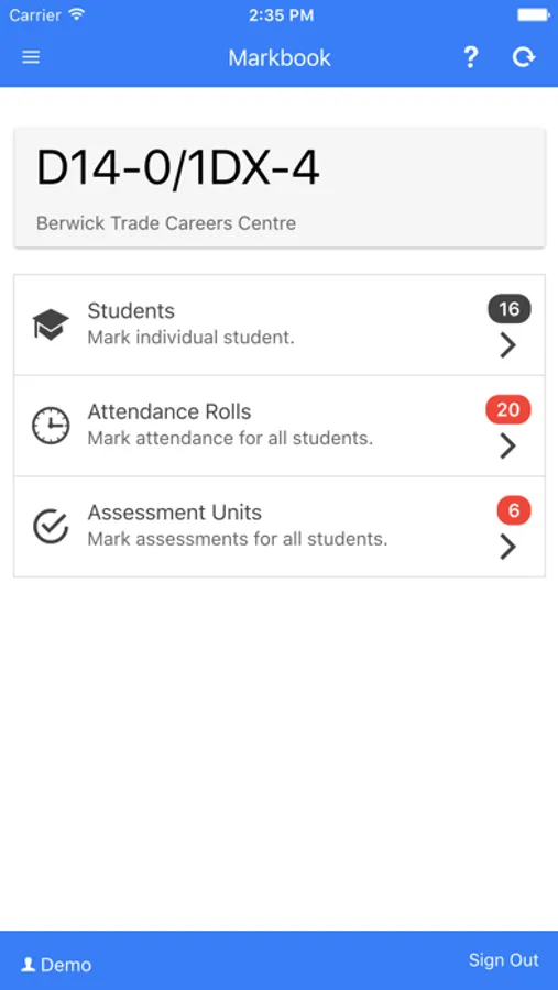 This version of Markbook Mobile is configured for use by Chisholm Institute.