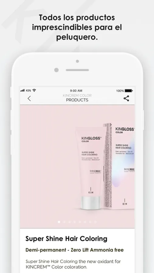 - Color Studio: An essential tool for day-to-day use in your salon that will allow you to digitally navigate between the different KIN Cosmetics coloring lines. Consult and visualize the full range of shades in the KINGLOSS Color, KINCREM Color, KINESSENCES Color, KINESSENCES Blondes and Candy Colors lines.