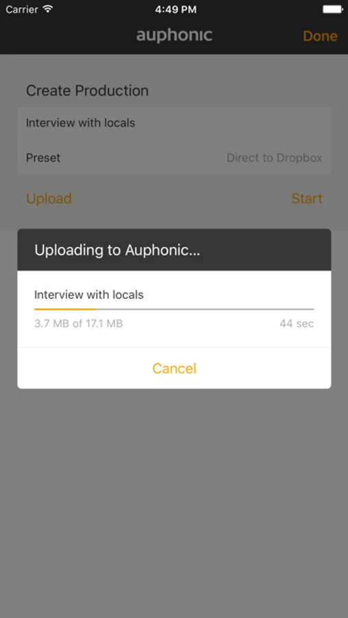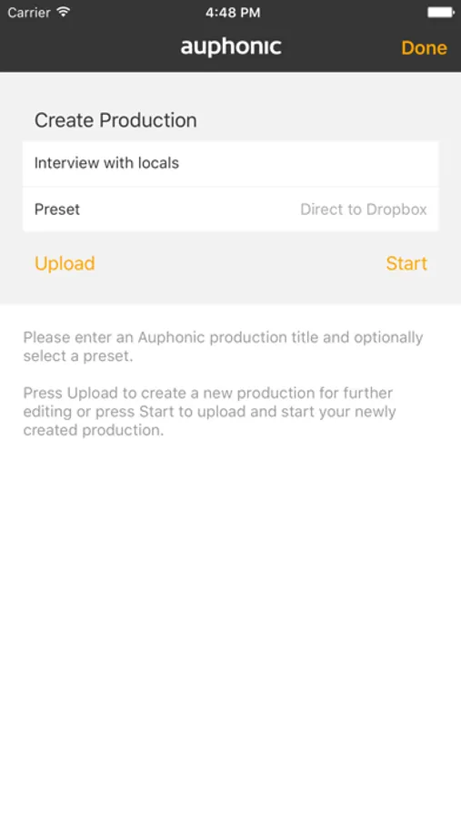 The app includes Share Sheet and Open In functionality, to import audio from other iOS apps and export it to Auphonic.