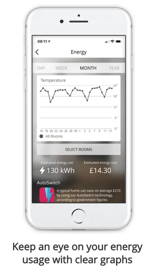 By using the automatic settings for different room types, MyHeating can keep zones you’re not likely to be using at that time at a comfortable, but more efficient temperature when you’re at home, ensuring bedrooms aren't unnecessarily heated during the day and just up to your comfort temperature when you’re ready for bed.