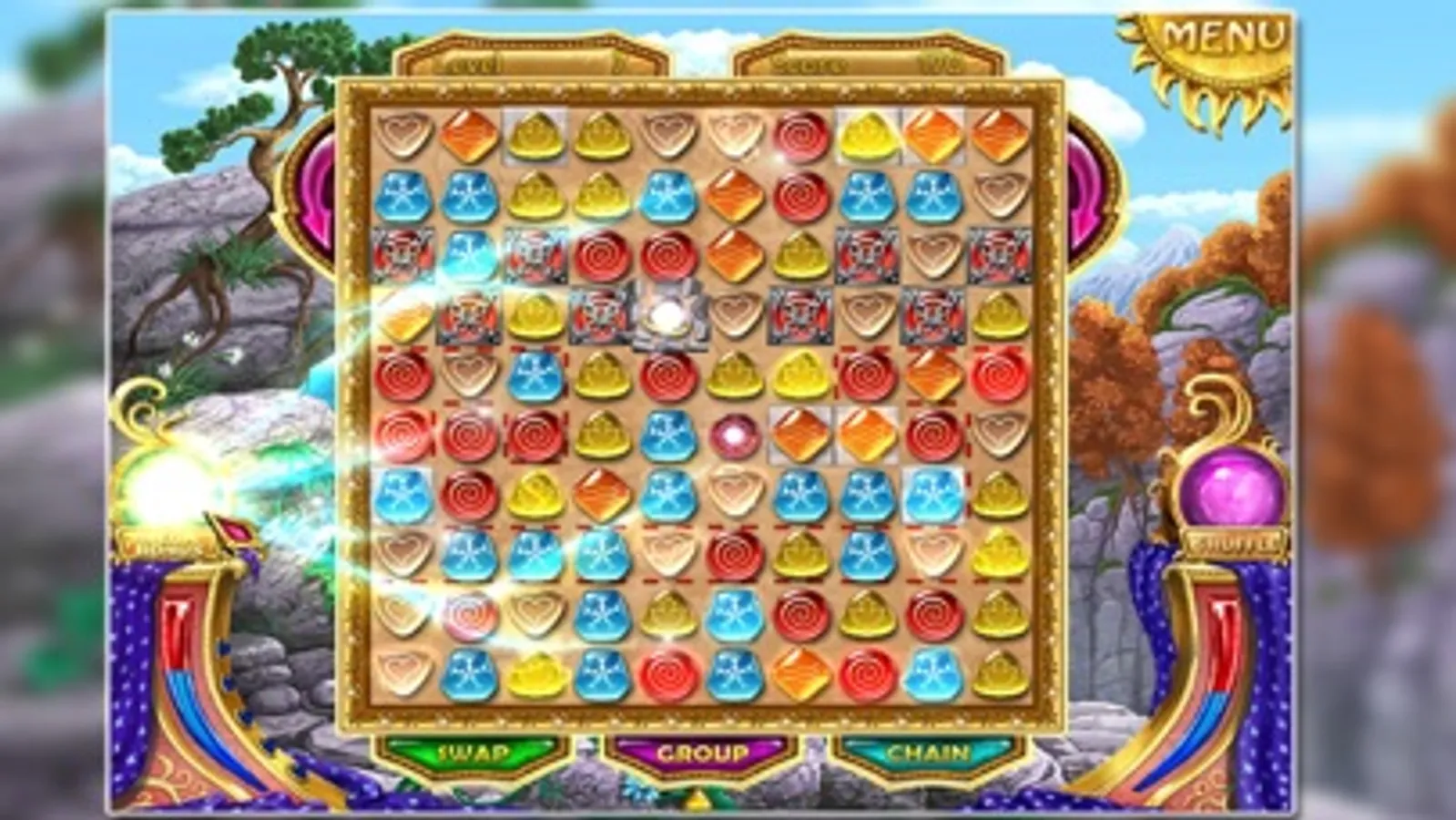 - Three gameplay modes: swap, chain, group.