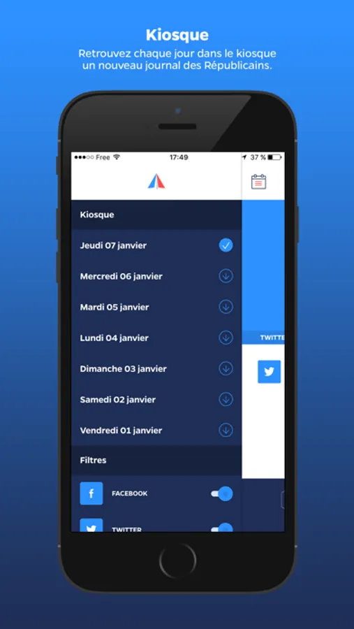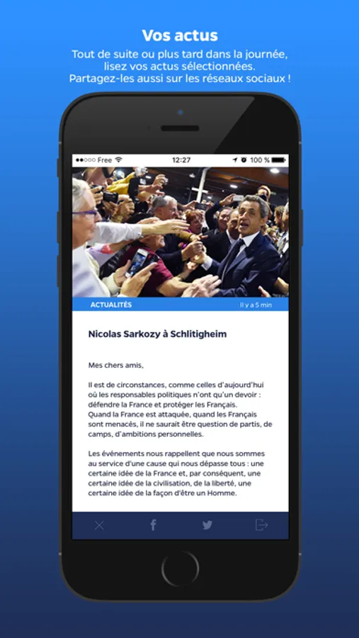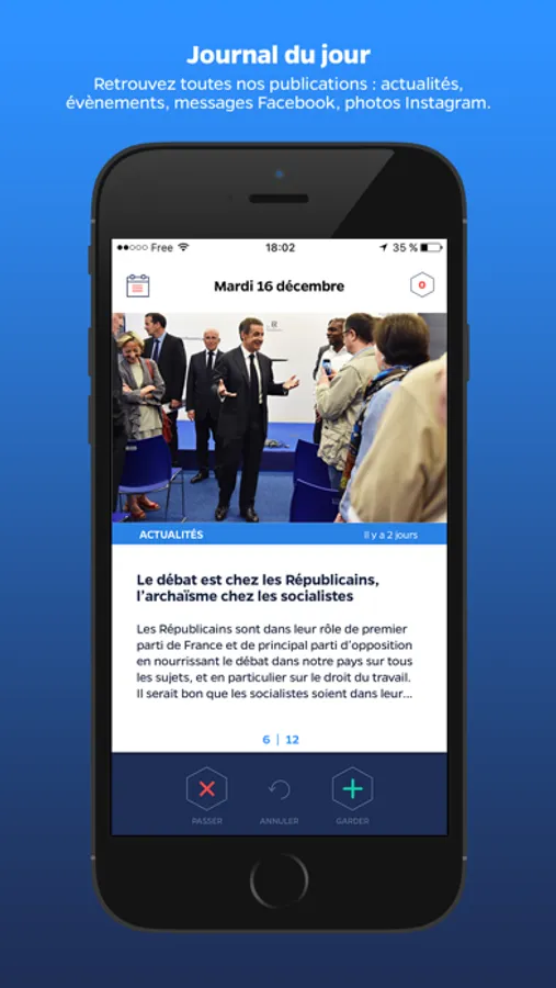 AIR (Action, Information, Républicains) est le journal de bord des Républicains. Chaque jour, un nouveau journal est publié. Il contient les dernières actualités, argumentaires, portraits, communiqués et informations pratiques publié des Républicains. AIR vous permet de tout savoir sur l'actualité de notre mouvement, celle de nos militants, des nos cadres, de nos dirigeants et de notre Président, Nicolas Sarkozy. AIR facilite également le partage d'informations et l'inscription à nos évènements et aux actions de terrain menées près de chez vous (tractage, porte à porte, phoning, réunions d'appartement,...). Alors téléchargez l'application ! Prenez le grand AIR, celui de l'action de terrain et du partage d'information. C'est tous ensemble que nous construirons l'alternance dont la France a tant besoin.