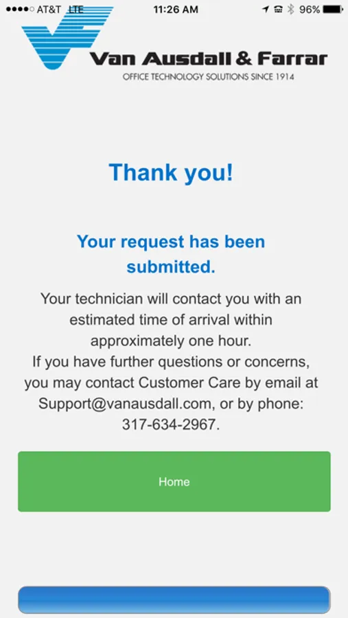 Order copier supplies or request service using the Van Ausdall & Farrar Customer Care app by simply scanning the QR code on your device or copier.
