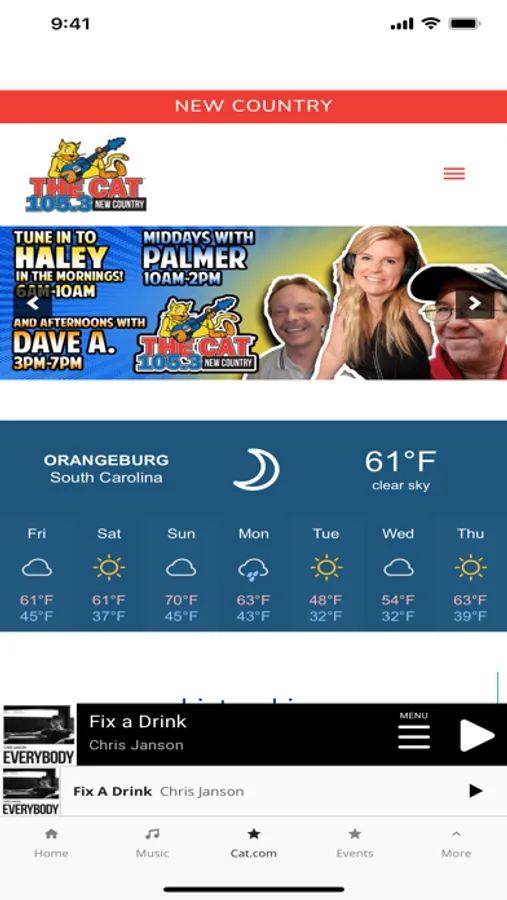 105.3 The Cat plays chart topping country artists all day long. From Miranda Lambert, Carrie Underwood to Kenny Chesney and Luke Bryan. Start your mornings with Haley and Mike weekdays from 6a-10a and the hottest country music all day.