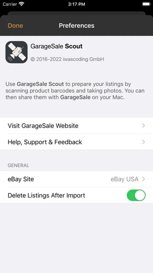 GarageSale Scout is a companion app for creating eBay listings together with GarageSale for OS X.