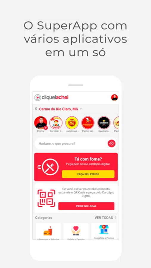 A solução para este problema estava na China, pois lá eles já fazem tudo com apenas um aplicativo. Então após estudar a fundo este novo conceito, nós decidimos mudar completamente o aplicativo Cliquei Achei, que antes era um Guia Comercial, e agora está se tornando um SuperApp.
