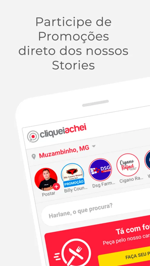 - Se você quiser pedir comida, pode entrar em um dos 5 apps de comida que você tem que manter instalado no seu celular, ou pode basicamente entrar no Cliquei Achei.