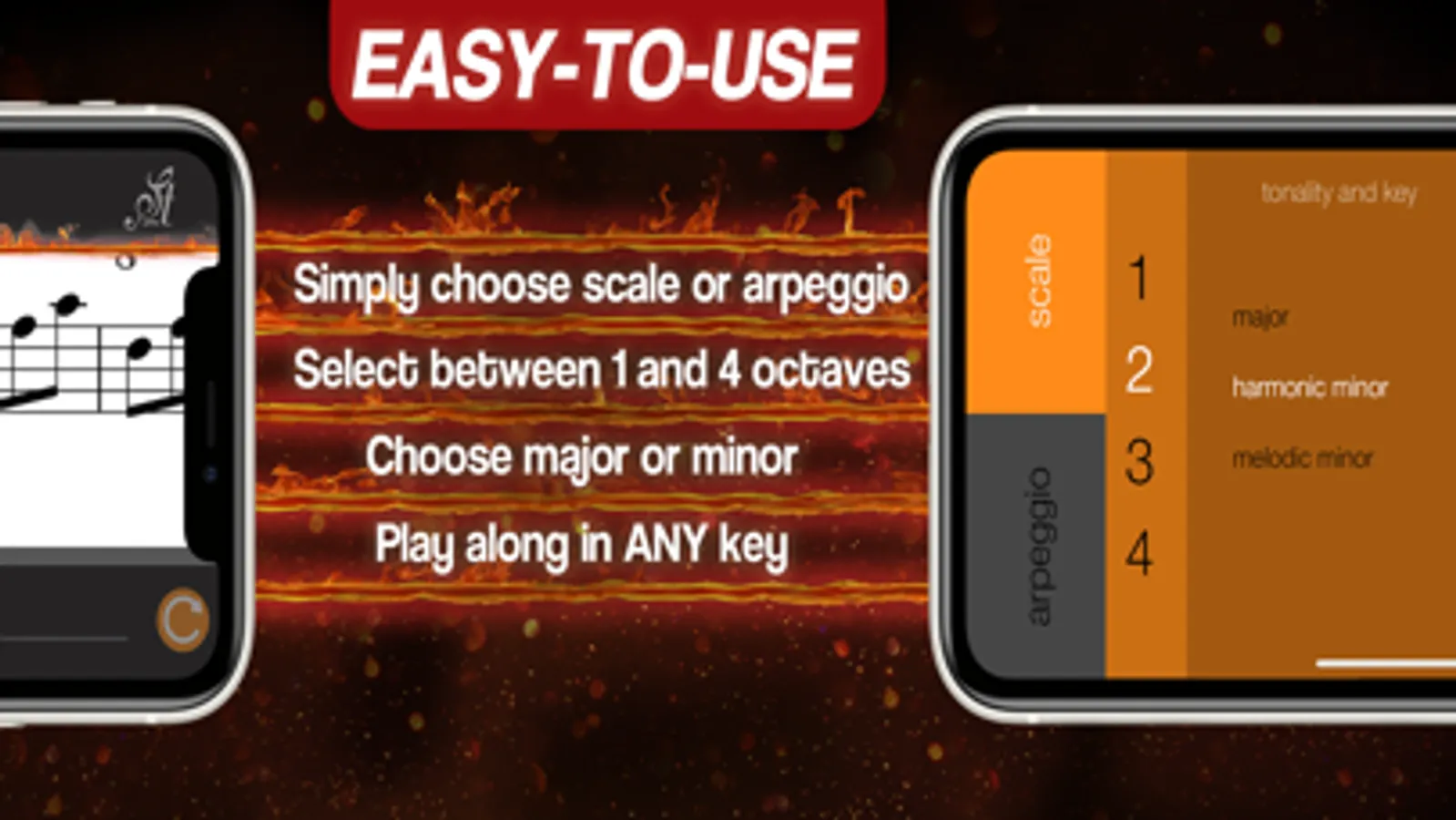 Gone are the dreaded days and endless hours of slaving away practising dry, dull exercises without musicality. With this revolutionary app, you can now play along to accompaniments that turn your scales & arpeggios into an exciting musical experience.