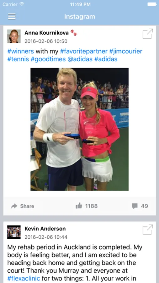 The Tennis News, Results & Scores app by News Surge delivers the latest breaking news, scores and results for tennis fans around the globe. Crafted by tennis enthusiasts, the app enables fans quick access to the newest tournaments/Grand Slam scores & results, photos and videos via Twitter, Instagram, and Youtube. You can also easily access the current player rankings plus news for individual top players such as Novak Djokovic, Serena Williams, Roger Federer, Maria Sharapova, Rafael Nadal and more.