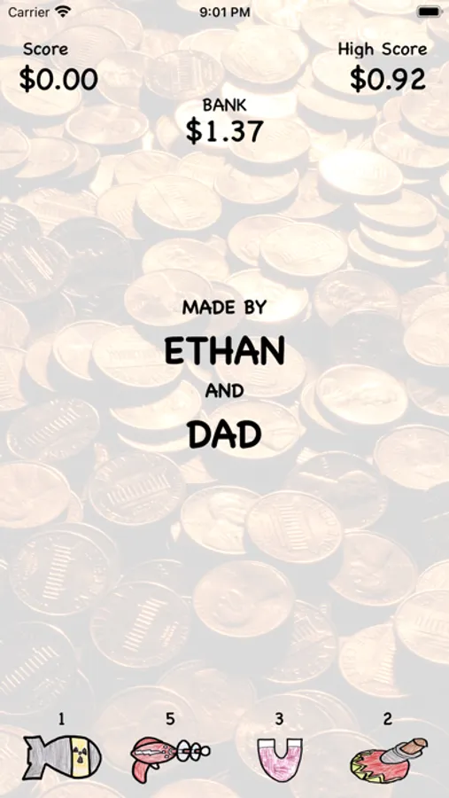 It was great working together. The only artistic difference we really had was I tried to get him to use an image of a coin as the icon because it would better represent the game. However, there's something about kids and treasure chests.