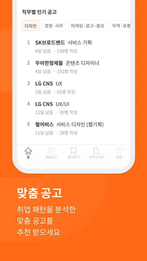 - 내가 원하는 직무와 경력에 맞게 맞춤 공고 제공과 스마트 매치