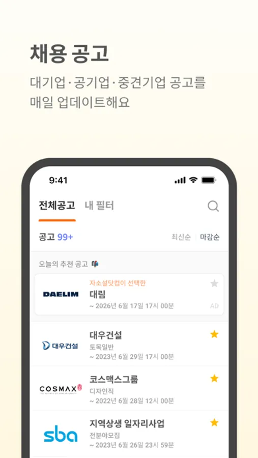 신입, 경력, 인턴 채용 공고 모두 확인할 수 있어요!