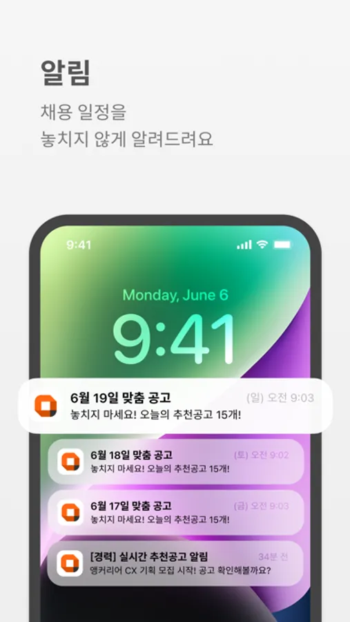 - 관심 있는 공고의 지원 기간을 놓치지 않도록 마감일 알림 기능