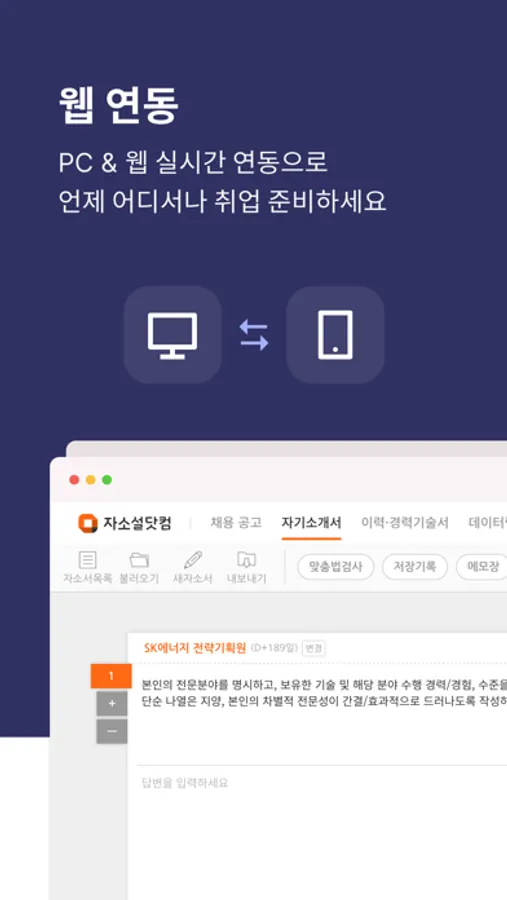 자기소개서 자동 저장 기능을 통해 언제 어디서든 손쉬운 편집 가능!
