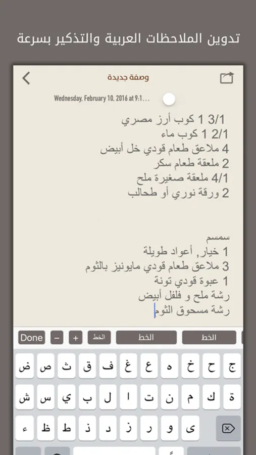 تدوين الملاحظات بسهولة وتعيين تذكير سريعة. تصميم بسيط العربية. طريقة سهلة للحفاظ على الملاحظات، والقوائم، أفكار وأكثر, كل شيء عن السرعة والكفاءة. فتحه، وكتابة بعض الأفكار، والانتهاء من ذلك. يمكنك أيضا مشاركة الملاحظات ونشرها للآخرين.