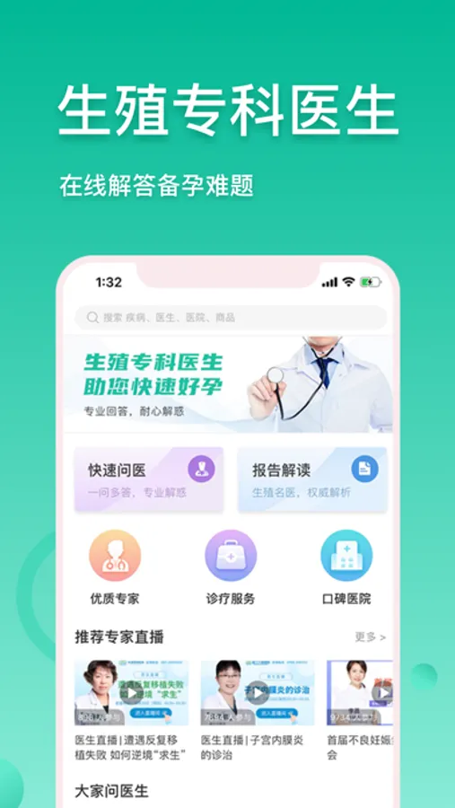 3、好孕医院:全国5000+三甲医院妇产科医生在线,提供免费医生咨询、私人顾问、挂号、检查、手术预约,及海内外试管婴儿等医学服务,一站式帮您好孕。