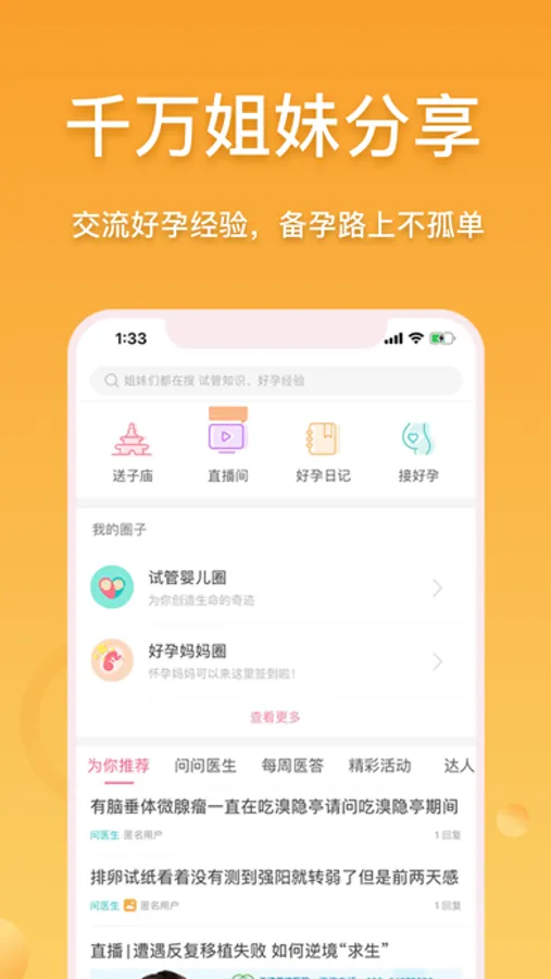 4、好孕圈子:孕气最浓的交流社区,充满正能量,怀孕妈妈及备孕病友互帮互助,一起努力生鸡宝宝。
