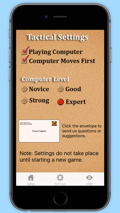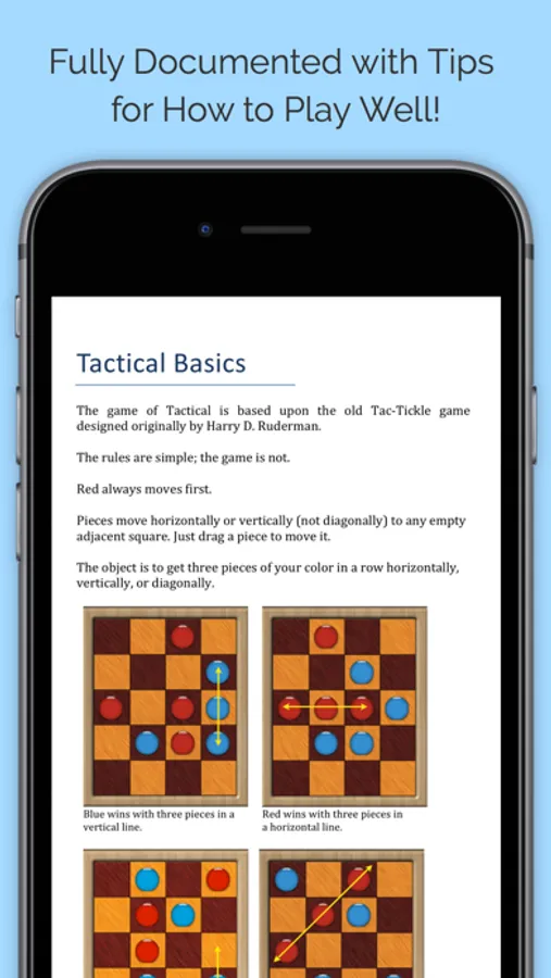 The app contains a great deal of information about how to play Tactical Checkers well.
