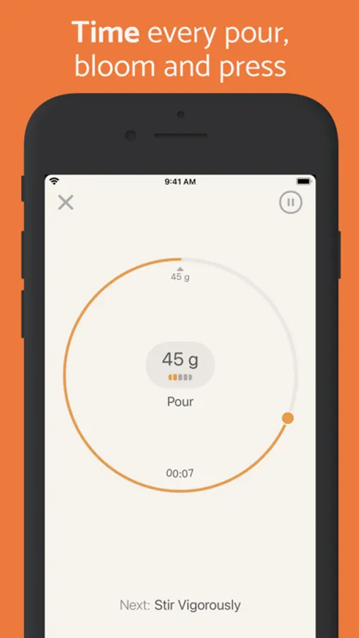 Brew Timer helps you produce a consistently great cup of coffee by guiding you step-by-step through the brewing process. Start with one of the included brew recipes or add your own and tune it to perfection. Brew Timer works with you, no matter what you use to brew.