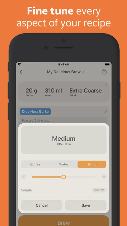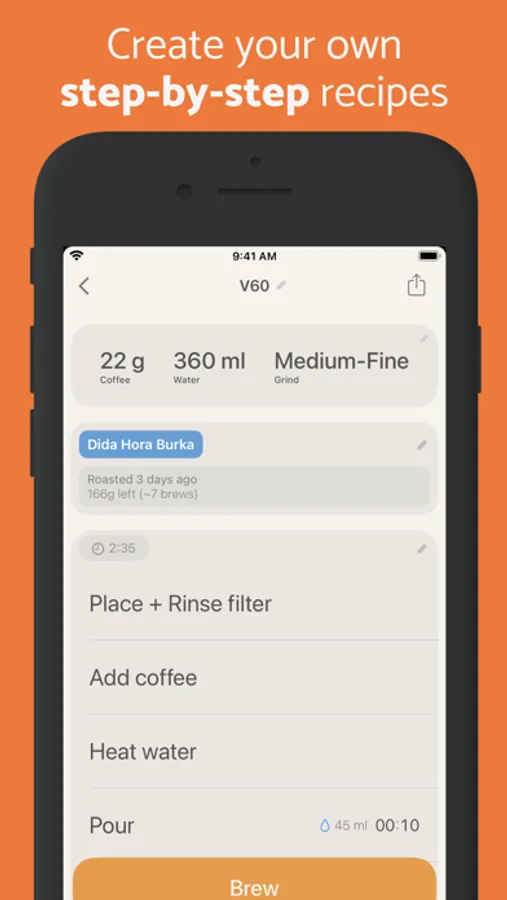 After each brew, Brew Timer compiles a one-stop dashboard to make it easy to add tasting notes, reference coffee details, and tweak your recipe for next time.