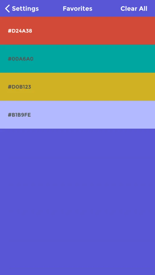 You can also see the hex values and RGB values of the colors to transfer them easily to other editing softwares. The app also remembers last used color, so whenever you come back, it'll start right as you left it.