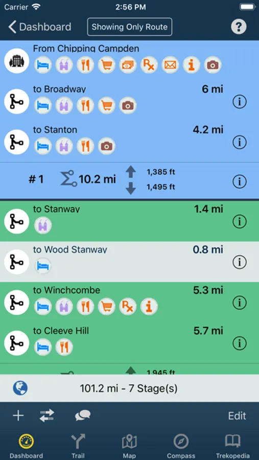 TrekRight makes it easy to plan your route (including configuring the sections you want to follow), organize it into stages, and review distances and elevations (including a handy interactive Elevation Profile Chart). Comes pre-defined with popular routes (full and partial). Review and rank hotels / B&Bs, flag locations of interest as ‘favourites’, add your own notes, and more. Be prepared!