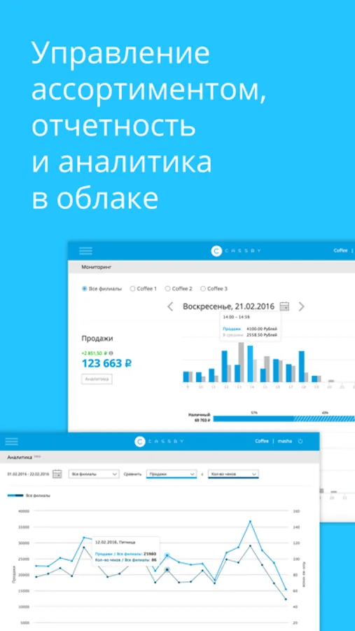 - управление ассортиментом, отчетность и аналитика в облаке