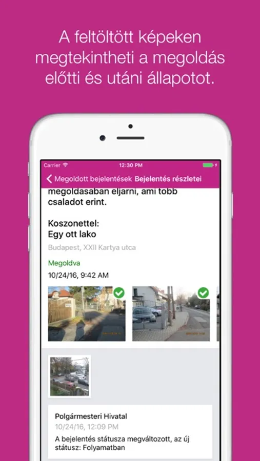 Az alkalmazással kapcsolatos bővebb információk, valamint a bejelenthető hibatípusok részletes leírása a honlapunkon elérhető (http://budafokteteny.hu/mobilalkalmazas).