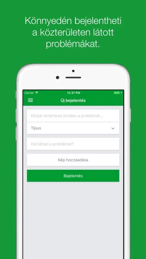 Fontos, hogy csak közterületen található hibák bejelentésére szolgál az alkalmazás.