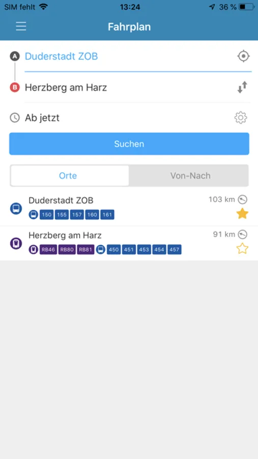 - Abgefragte Verbindungen oder Haltestellen können als Favorit in der App hinterlegt und so noch schneller aufgerufen werden.