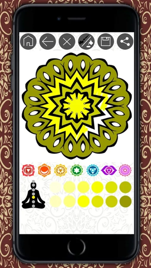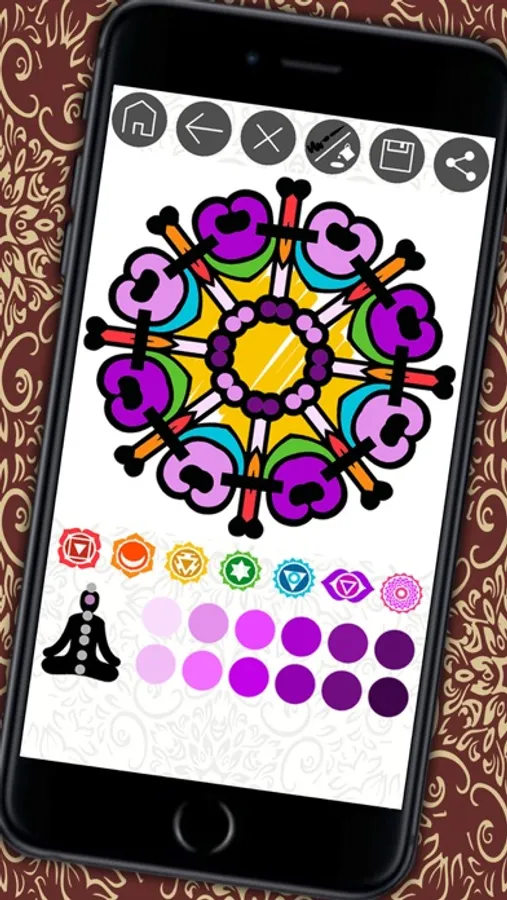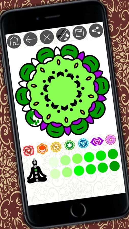 • When finished painting the mandala will be able to analyze its meaning and discover messages in your subconscious. Mandalas are an interpretation by shape and color, becoming powerful allies in meditation and healing. You can save it to your gallery because if you color mandalas at different times, you'll see how the patterns change according to your mood.