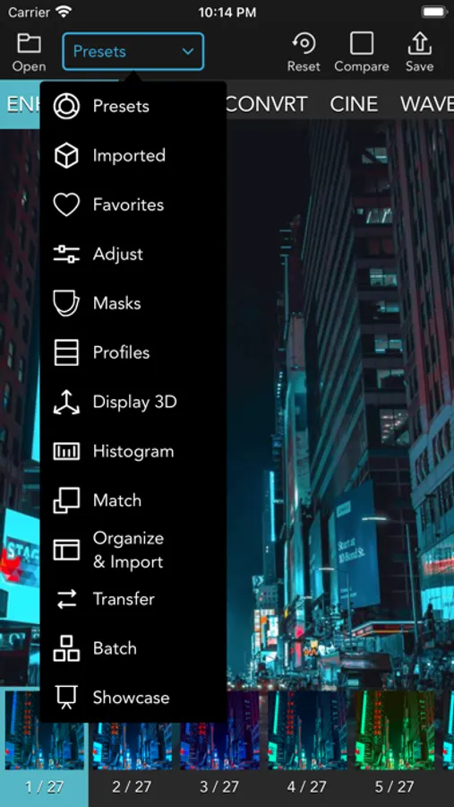 VideoLUT supports a variety of LUT formats, including DaVinci Resolve 3D Cube LUT (.cube) and Autodesk 3D LUT (.3dl). You can import .cube, .3dl, and 512x512 .png LUT tables, and save or import cube files to iCloud, Dropbox, and other storage apps.