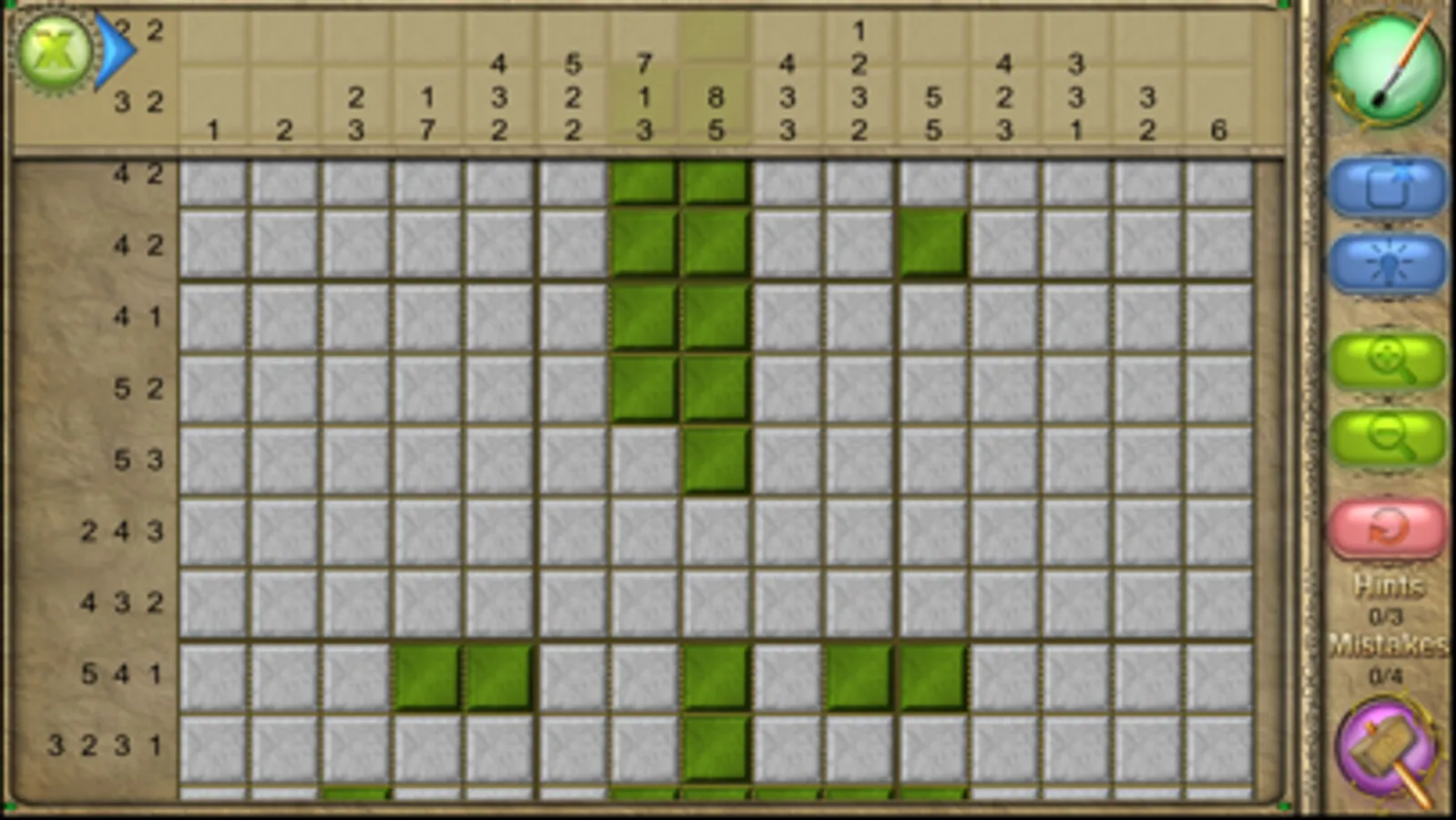 An old Japanese logic puzzle takes on a new look with FlipPix Art! Touch tiles to paint them or break them to form colorful components of paintings. The goal is to use logic to determine which tiles should be filled to reveal a hidden picture.
