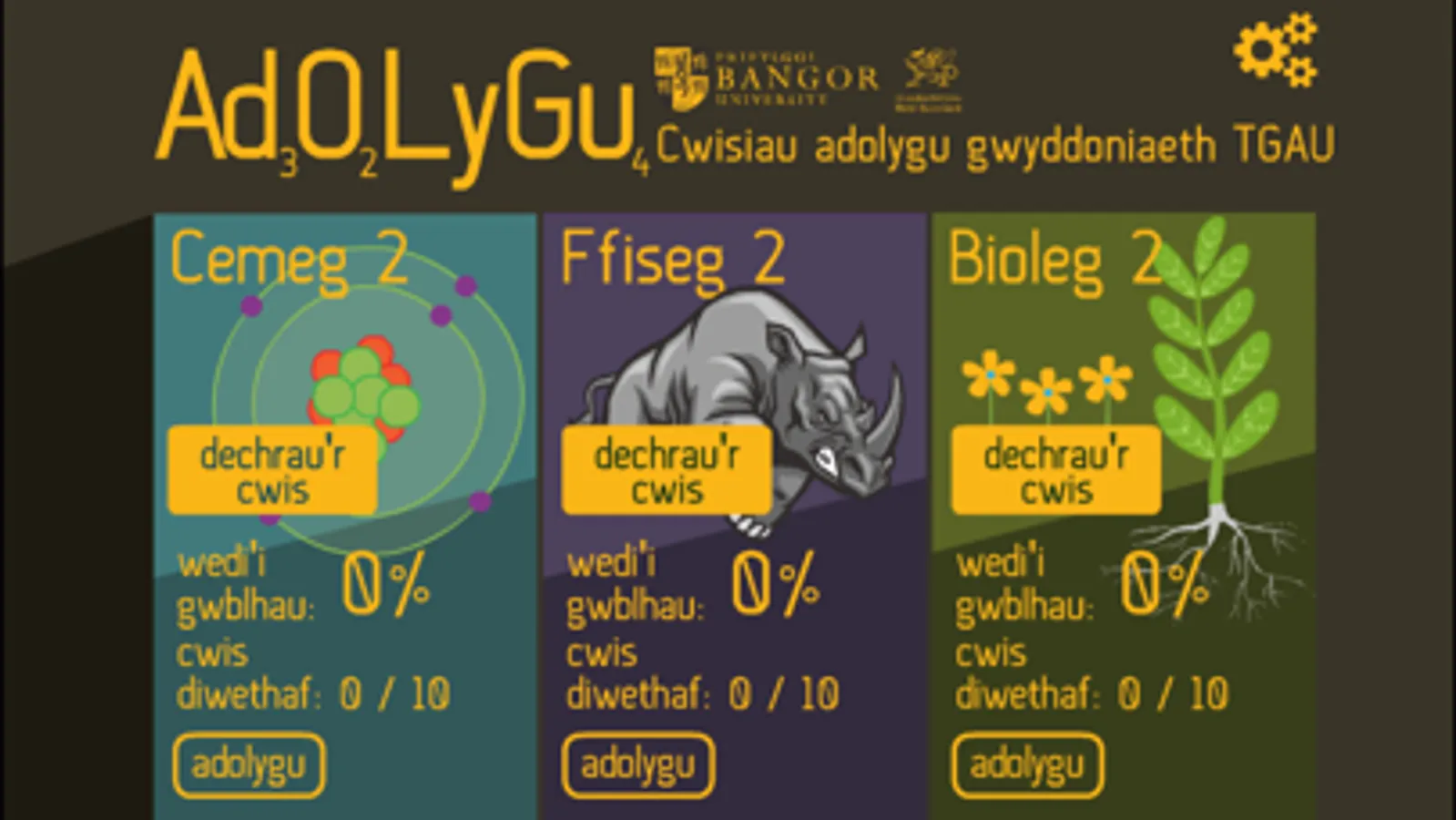 Wedi’i seilio ar Ganllawiau Adolygu Gwyddoniaeth TGAU Prifysgol Bangor, mae’r ap gwych hwn, sy’n rhad ac am ddim ac yn gwbl ddwyieithog, yn cynnig cwisiau i dy helpu wrth baratoi ar gyfer arholiadau gwyddoniaeth TGAU blwyddyn 10.
