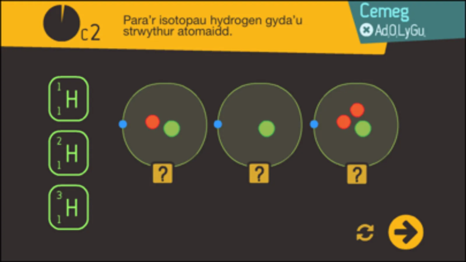 Ar hyn o bryd mae’r ap yn cynnig 50 o gwestiynau Cemeg, Bioleg a Ffiseg ar amrywiaeth o bynciau ac yn awgrymu pa feysydd y dylid eu hastudio i wella dy wybodaeth a chael gwell sgôr.