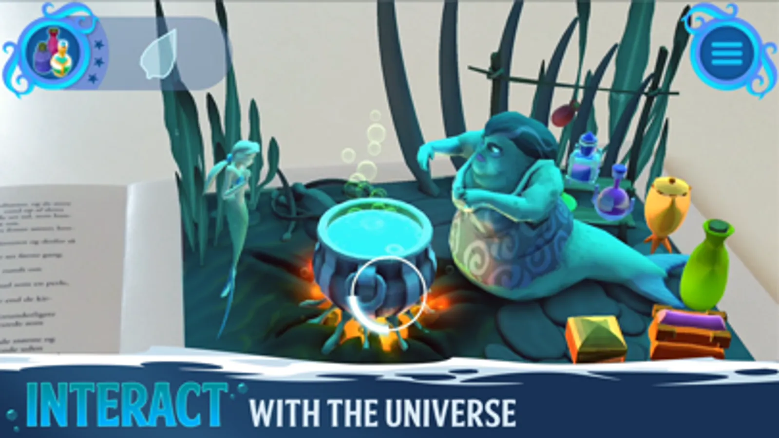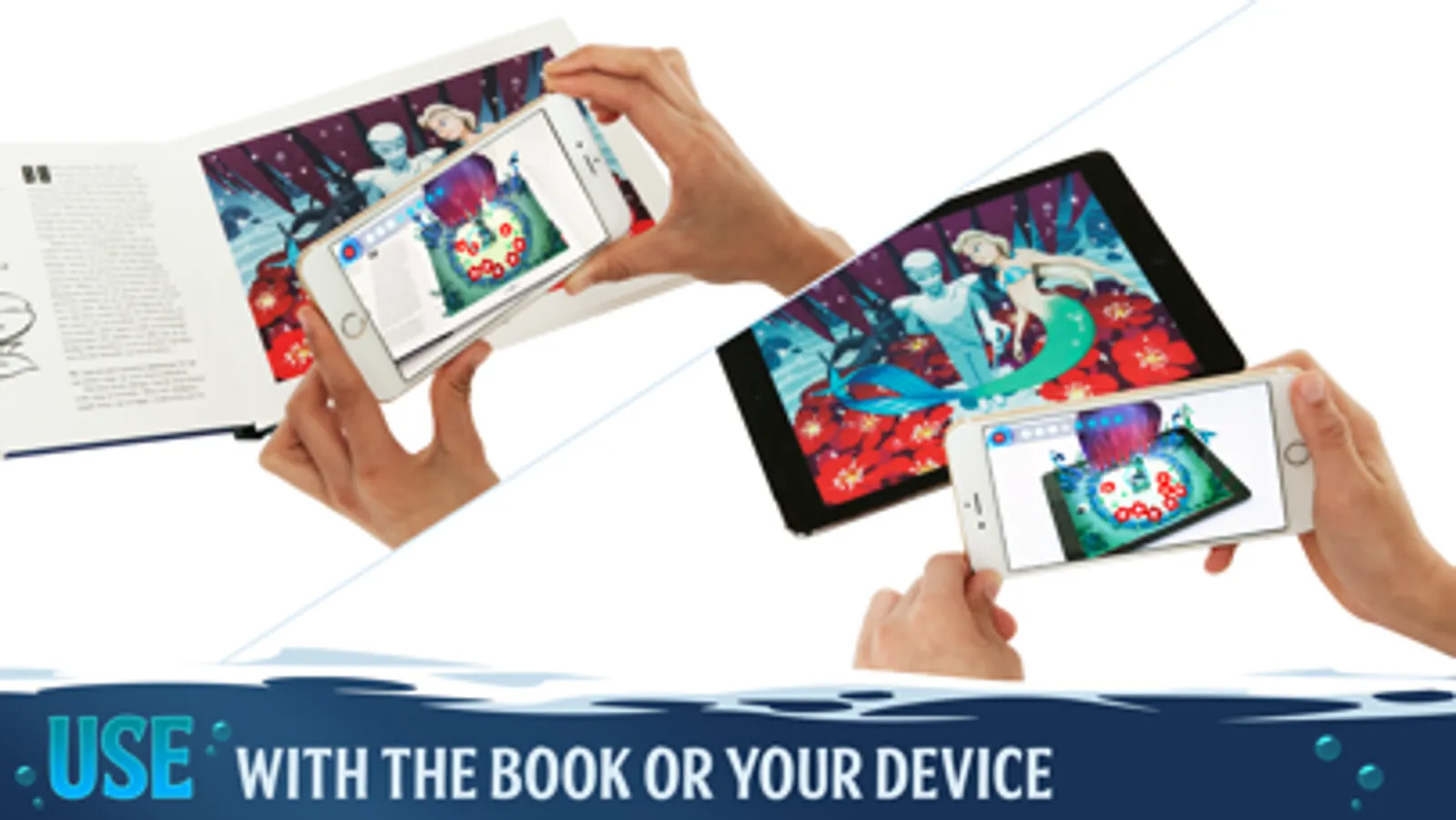 Explore scenes from the classic story of The Little Mermaid in a new and magical way. Watch the beautiful illustrations in the physical book come to life, directly in front of you, as the device becomes a window into the universe of the book. Go explore from any angle or distance and unlock hidden surprises! The magical illustrations can be found within the app to be displayed on a separate device while the game is played on another. For an optimal experience try using the app with our physical book.