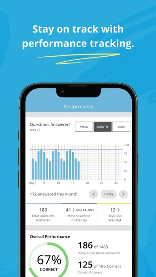 • Daily Goal Tracker – Set your test goal and practice