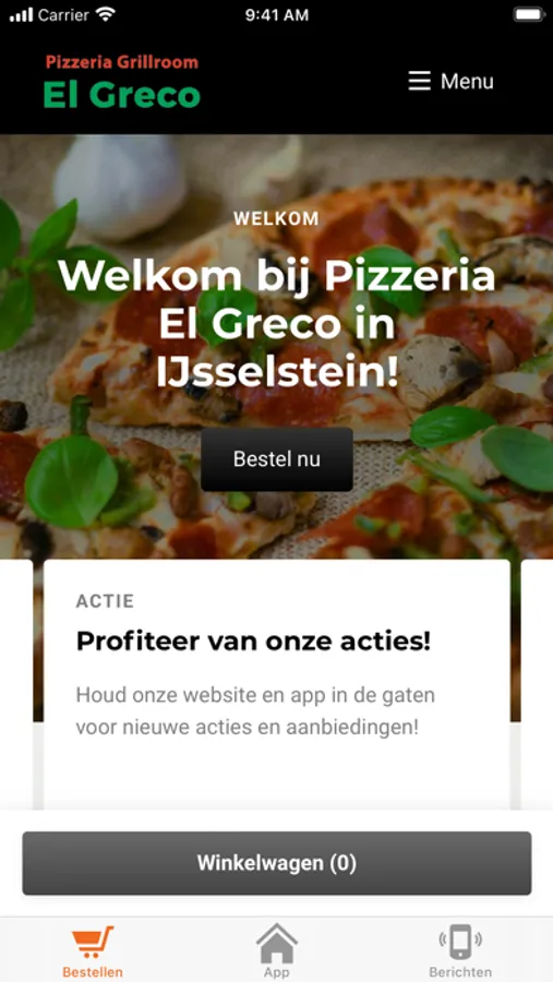 Download onze app en blijf op de hoogte van het laatste nieuws en de nieuwste acties, aanbiedingen en kortingen. Via onze app kunt u onze menukaart bekijken en direct vanaf uw telefoon uw bestelling plaatsen. U kunt via de app ook met iDEAL betalen!