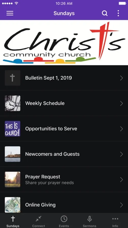 The Christ's Community Church App was created with the Subsplash App Platform.