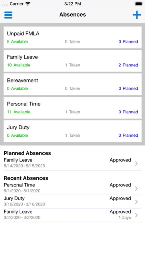- Employees can create, edit, delete, and view their absences, add and update their primary address