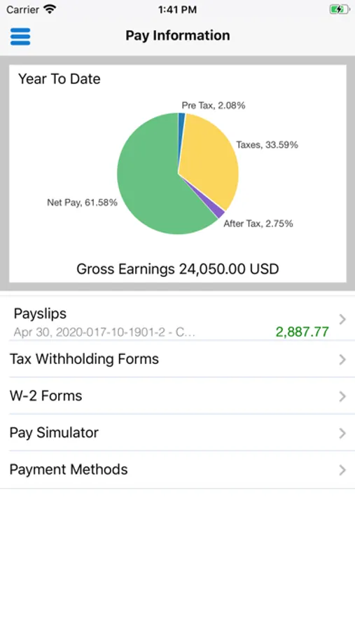 - US employees can simulate their pay, view W-2, view/update their Federal and State W-4 tax forms
