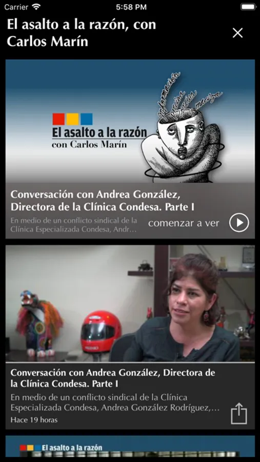 Navega fácilmente en la aplicación y examina las secciones que están en constante crecimiento con nuevos videos que son publicados regularmente. Comparte en tus redes sociales los temas de interés en común.