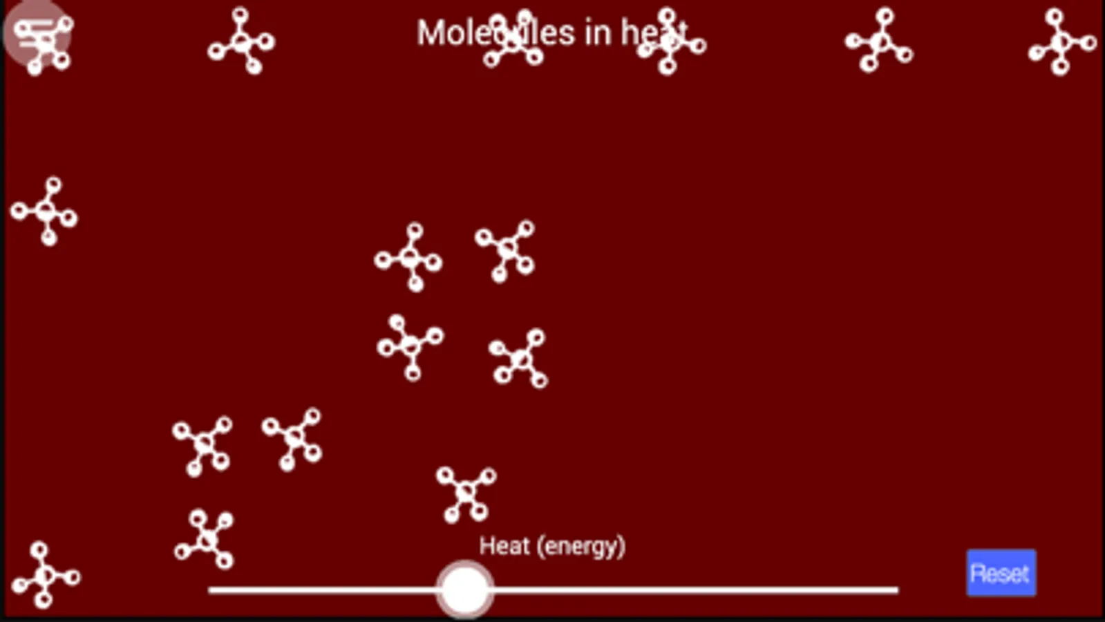 Hot Molecules is an interactive demonstration of the effects of heating and cooling on molecular activity.