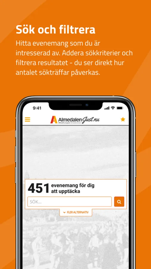 Utvecklade sökfunktioner gör det lätt för dig att hitta det du söker. I fritextfältet finns det autocomplete-funktion för att undvika stavfel. Utöver fritext går det bra att söka från listade kriterier. Här finns det möjlighet att addera olika sökord som t.ex. evenemangstyp, plats, ämne, arrangör, tid, medverkare, etc.