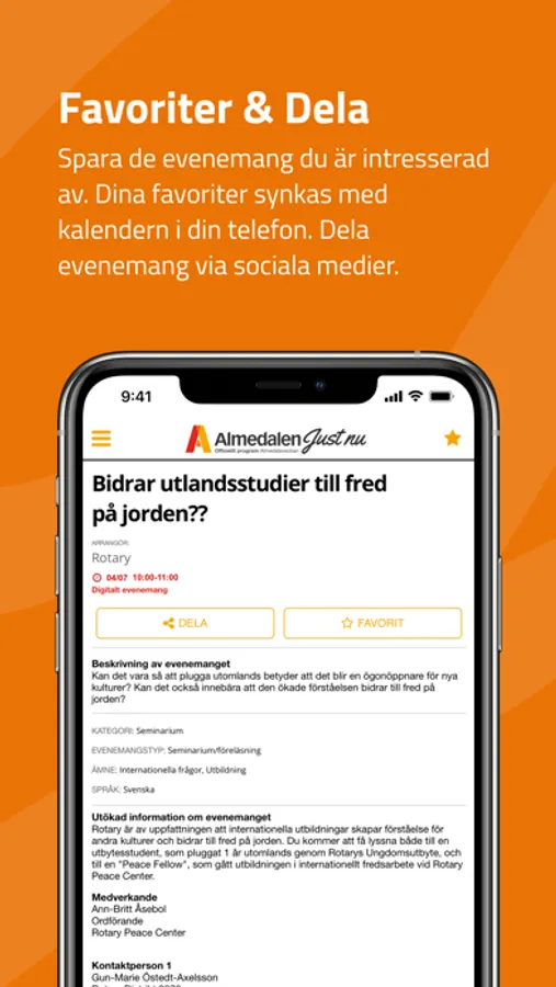 Visa favoriter. Här listas alla dina favoriter. Synkronisera och dela dina favoriter genom din kalender.