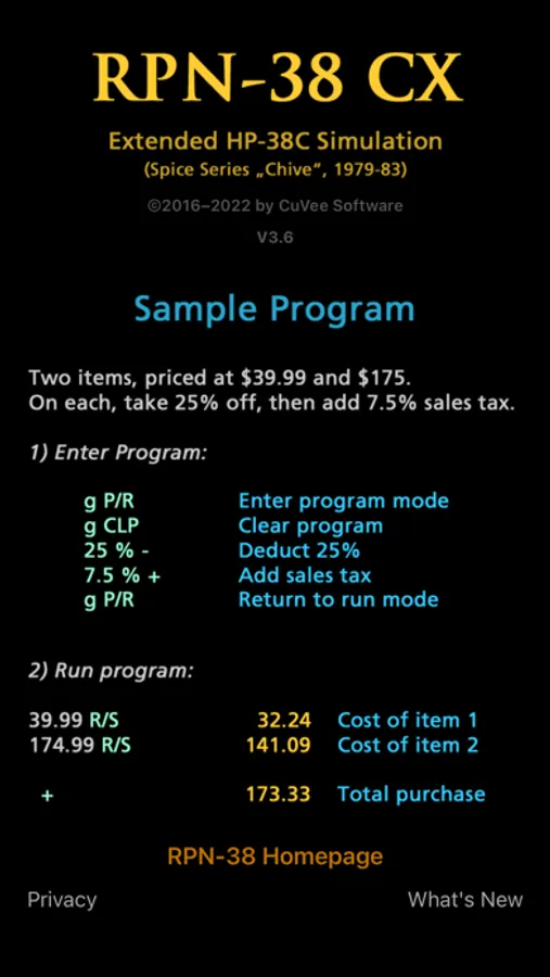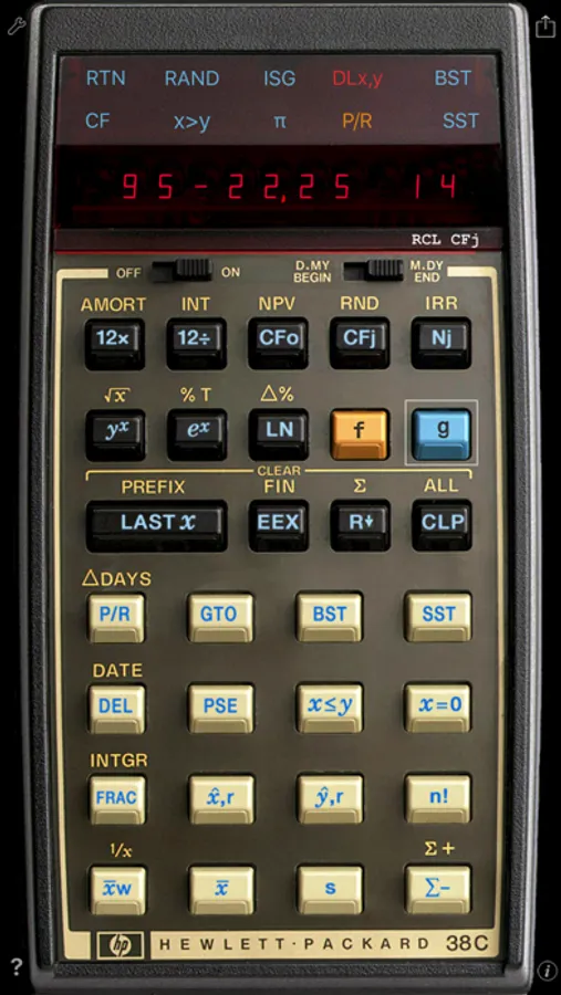 RPN-38 CX is the first photo-realistic simulation of Hewlett-Packard's popular high-end programmable business calculator HP-38C for the iPhone. Produced from 1979 through 1983, it was the "Chive" member of the third-generation HP calculators known as the "Spice" series.