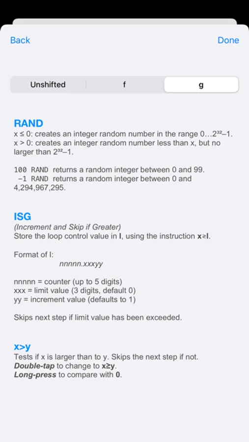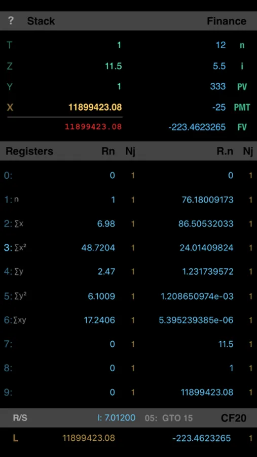 • 20 registers, "continuous", with unlimited store/recall arithmetic