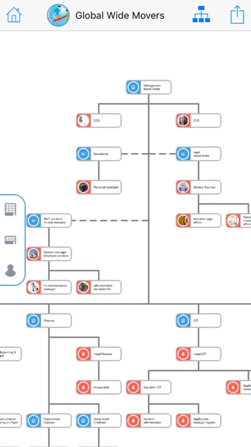 Organisation and the involvement of people working with you at your fingertips. This app makes it easy to define and draw Organisation Charts quickly.