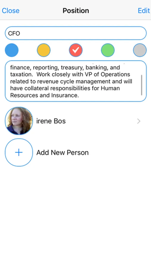 The app is aimed at HR- managers, project leaders and managers whose job involves describing the organisation and the involvement of departments, postitions and people working for the business or project. Optimising the business and giving an instight of who does what.